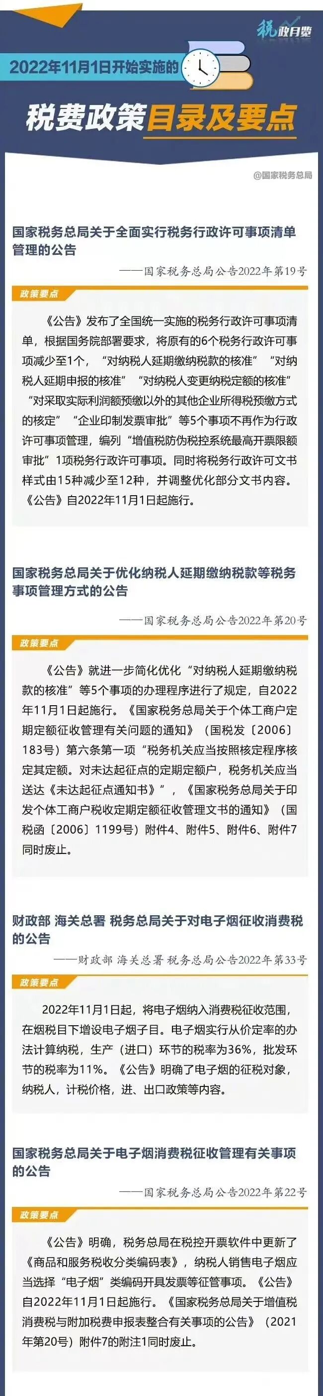 【擴散周知!2022年11月1日開始實施的稅費政策】
